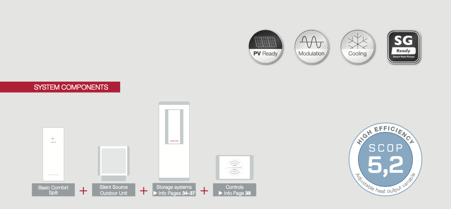 Our air heat pump in split design can be easily installed in a space-saving manner, ie. a modest footprint in the base- ment or technical room as well as outside is sufficient, and in any building. It uses the free and almost inexhaustible ambient air energy. Lower purchase costs make our air heat pump in split design particularly attractive.
